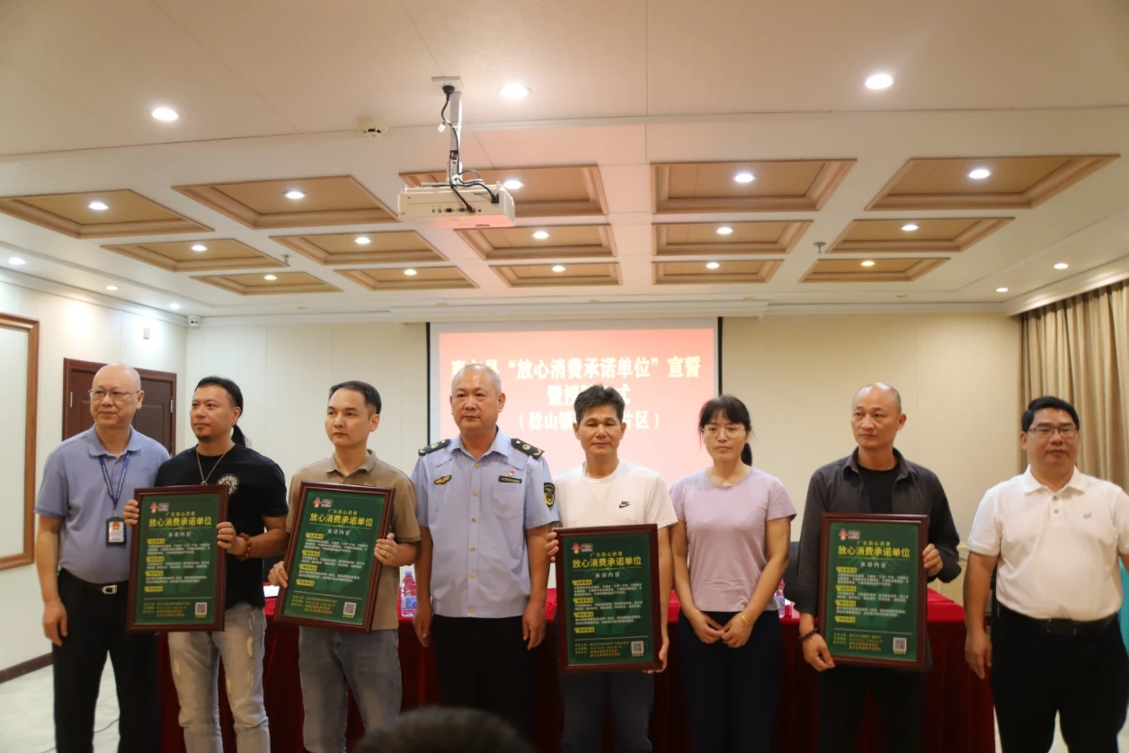 在主會場現(xiàn)場,市場監(jiān)管部門及稔山鎮(zhèn)政府領(lǐng)導(dǎo)向各承諾商戶授予牌匾并贈送《消費者權(quán)益保護法》《食品安全法》《計量法》等法律法規(guī)宣傳手冊,要求各獲牌商戶對照《放心消費承諾單位工作指引》誠信守法經(jīng)營,珍惜榮譽,再接再厲,進一步提升商品品質(zhì)和服務(wù)質(zhì)量,落實消費維權(quán)主體責(zé)任,為營造安全放心的消費環(huán)境做出新的更大貢獻。