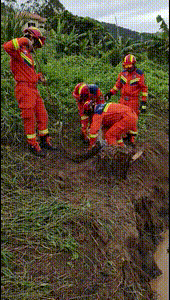 消防員到達現(xiàn)場后,在魚塘邊的水溝下找到了這條大蟒蛇!做好安全防護后,消防員利用捕蛇工具把蛇扯到地上,并將其裝入麻袋,移交給惠東縣野生救助站作下一步安置。