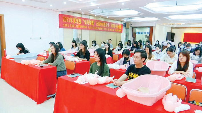 惠州日?qǐng)?bào)訊 (記者賴金朗 特約通訊員李文聰 通訊員馬觀英 陳文立)日前,惠東縣組織開展2023年“南粵家政”公益性技能培訓(xùn),其中首輪母嬰服務(wù)培訓(xùn)班在藍(lán)天職業(yè)培訓(xùn)學(xué)校開班。
