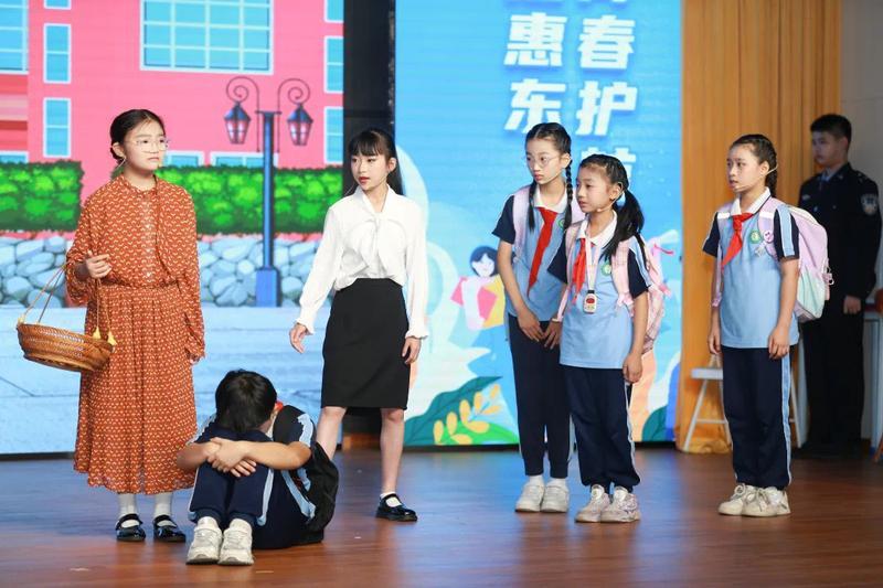 惠東縣實(shí)驗(yàn)小學(xué)學(xué)生演繹《對校園霸凌堅(jiān)決說,不!》。 惠州日報(bào)記者洪鵲兒 攝