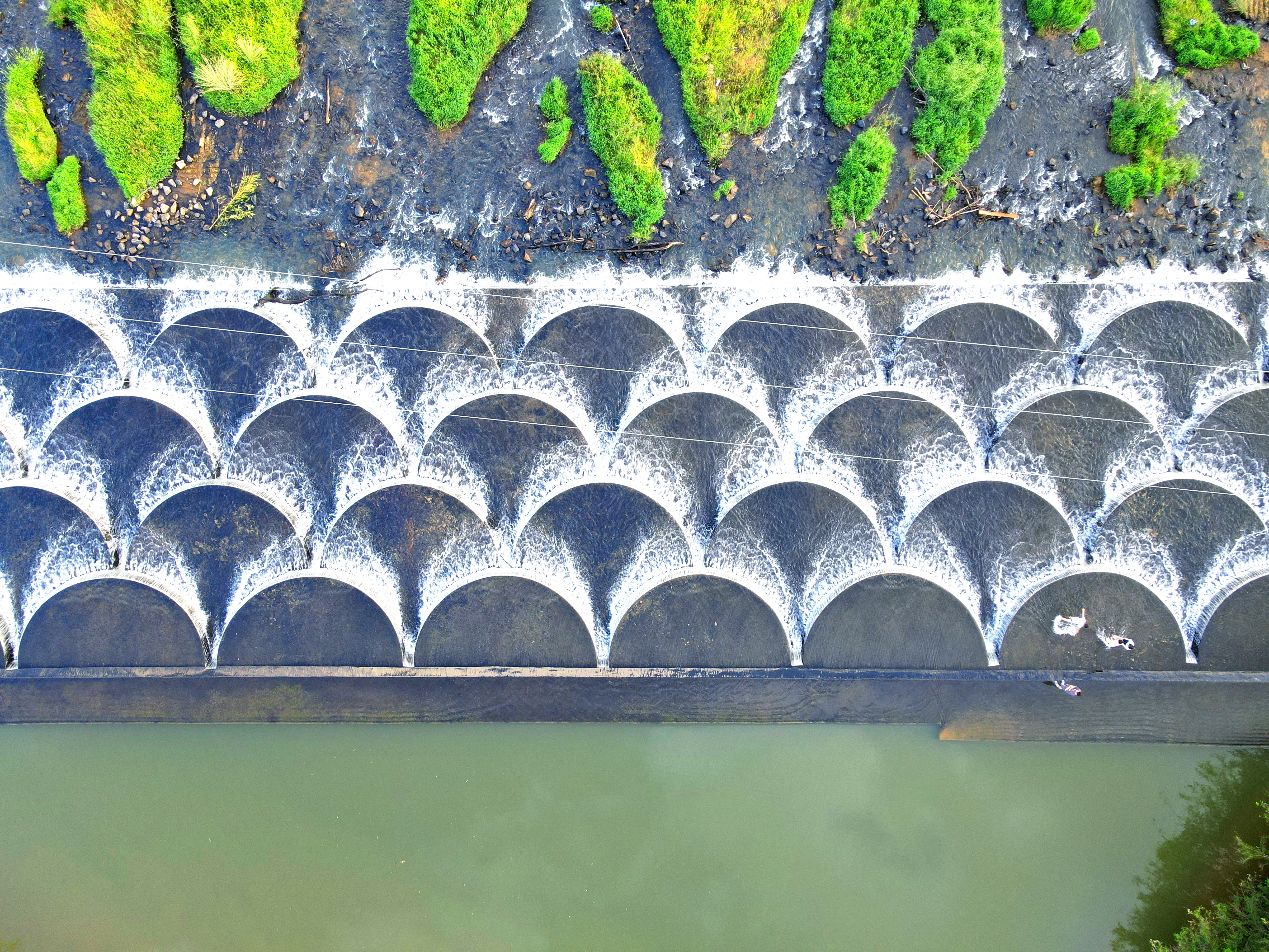惠東縣安墩鎮(zhèn)老樓村網(wǎng)紅魚鱗壩,一片又一片的水壩像魚鱗,清澈的流水淌過魚鱗壩,鱗光閃閃,每一片魚鱗都是一塊小場地。游客游玩需注意安全。