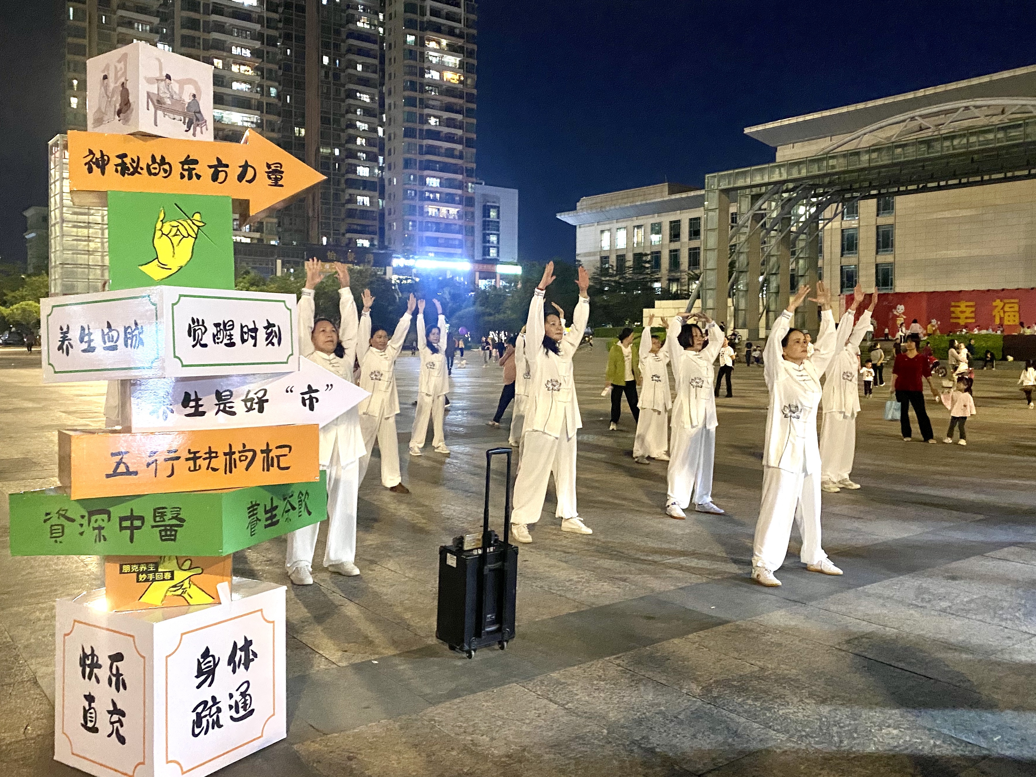 青年健康夜市八段錦健身操展演現(xiàn)場(chǎng)。 惠州日?qǐng)?bào)記者洪鵲兒 通訊員張惟 郭欣璐 攝