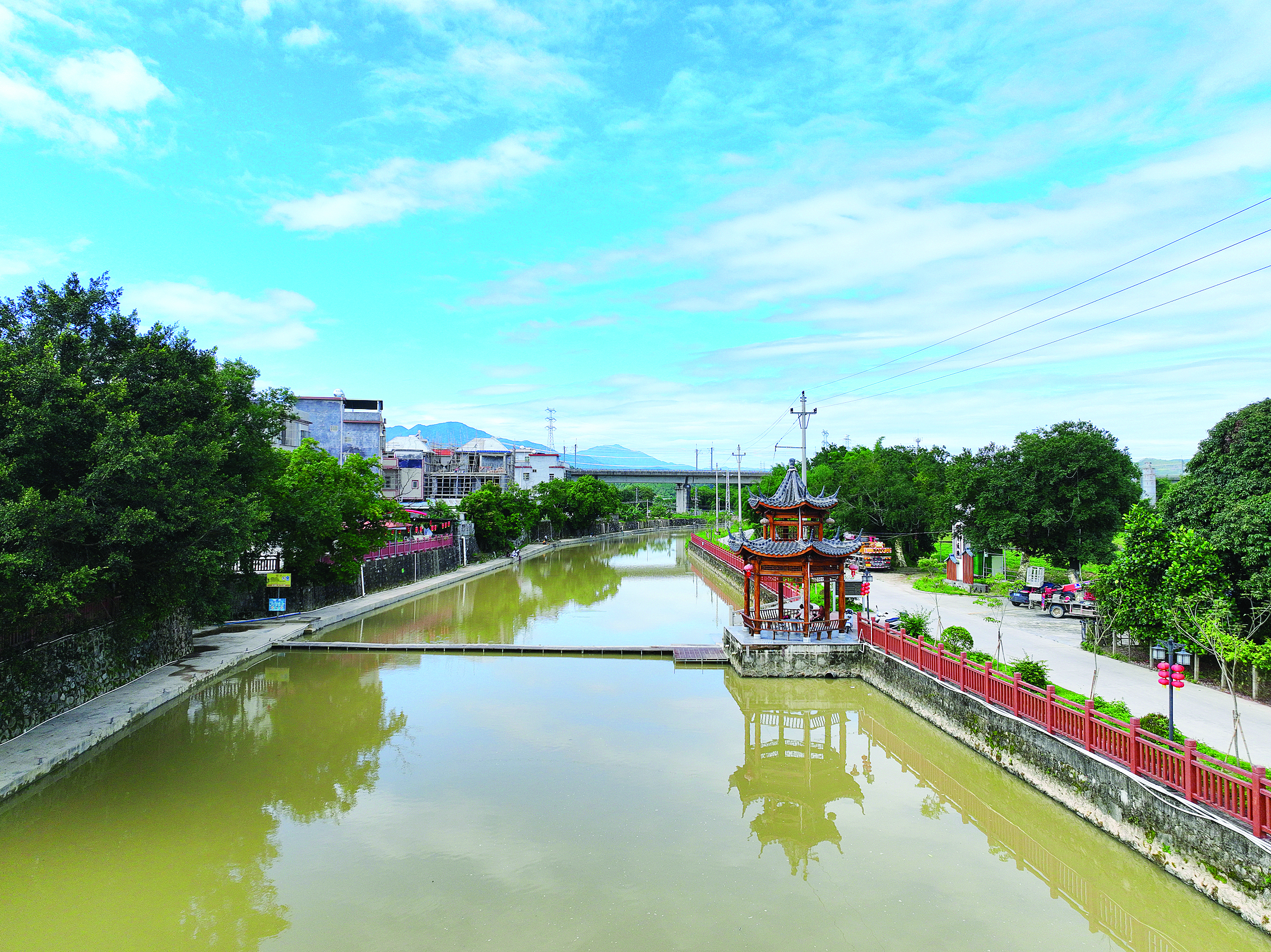平政村河邊的棧道、涼亭成為村民休閑娛樂(lè)好去處。 惠州日?qǐng)?bào)記者賴金朗 通訊員胡瓊 攝