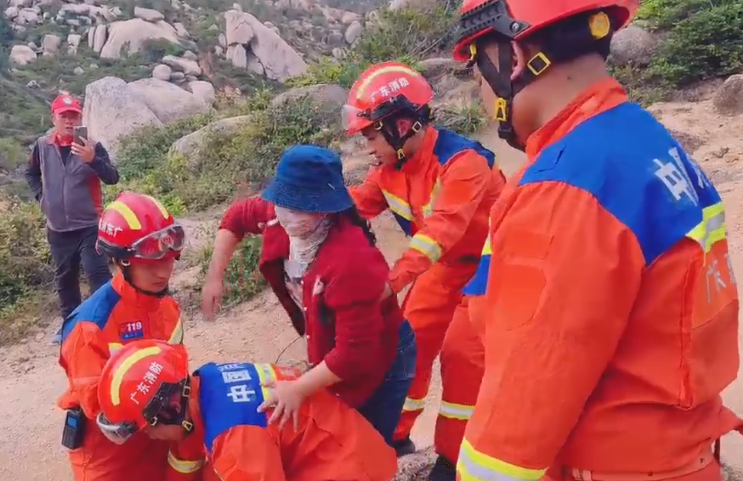 消防員立即攜帶專業(yè)器材,在熟悉路況的驢友帶領(lǐng)下,向著被困者的方位進(jìn)發(fā)。歷經(jīng)半小時(shí)的艱難攀爬,找到被困人員。現(xiàn)場(chǎng)發(fā)現(xiàn)傷者腿部嚴(yán)重受傷,無法自行行動(dòng)。
