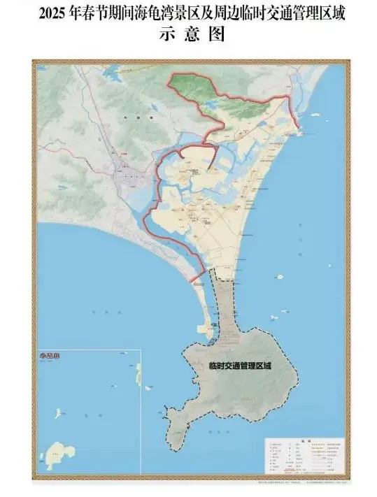 關(guān)于2025年春節(jié)期間海龜灣景區(qū)及周邊區(qū)域?qū)嵤┡R時(shí)交通管理和配套服務(wù)措施的通告