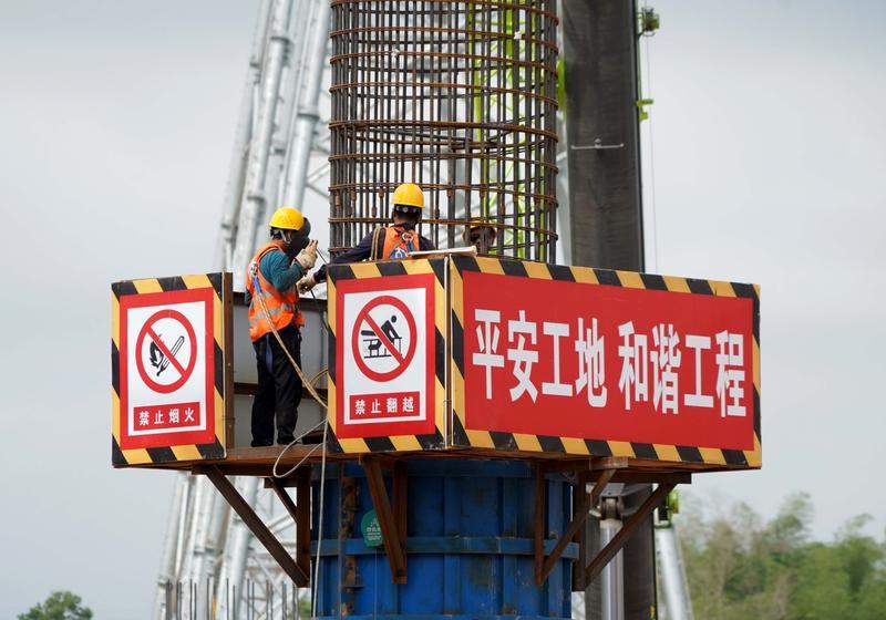 在惠州稔平環(huán)島高速考洲洋大橋施工現(xiàn)場,只見南、北兩個主塔的樁基、承臺部分已經(jīng)完工,數(shù)十根橋墩穿出水面,屹立在考洲洋中。目前,施工人員正在開展主塔塔身及引橋下部結(jié)構(gòu)施工。