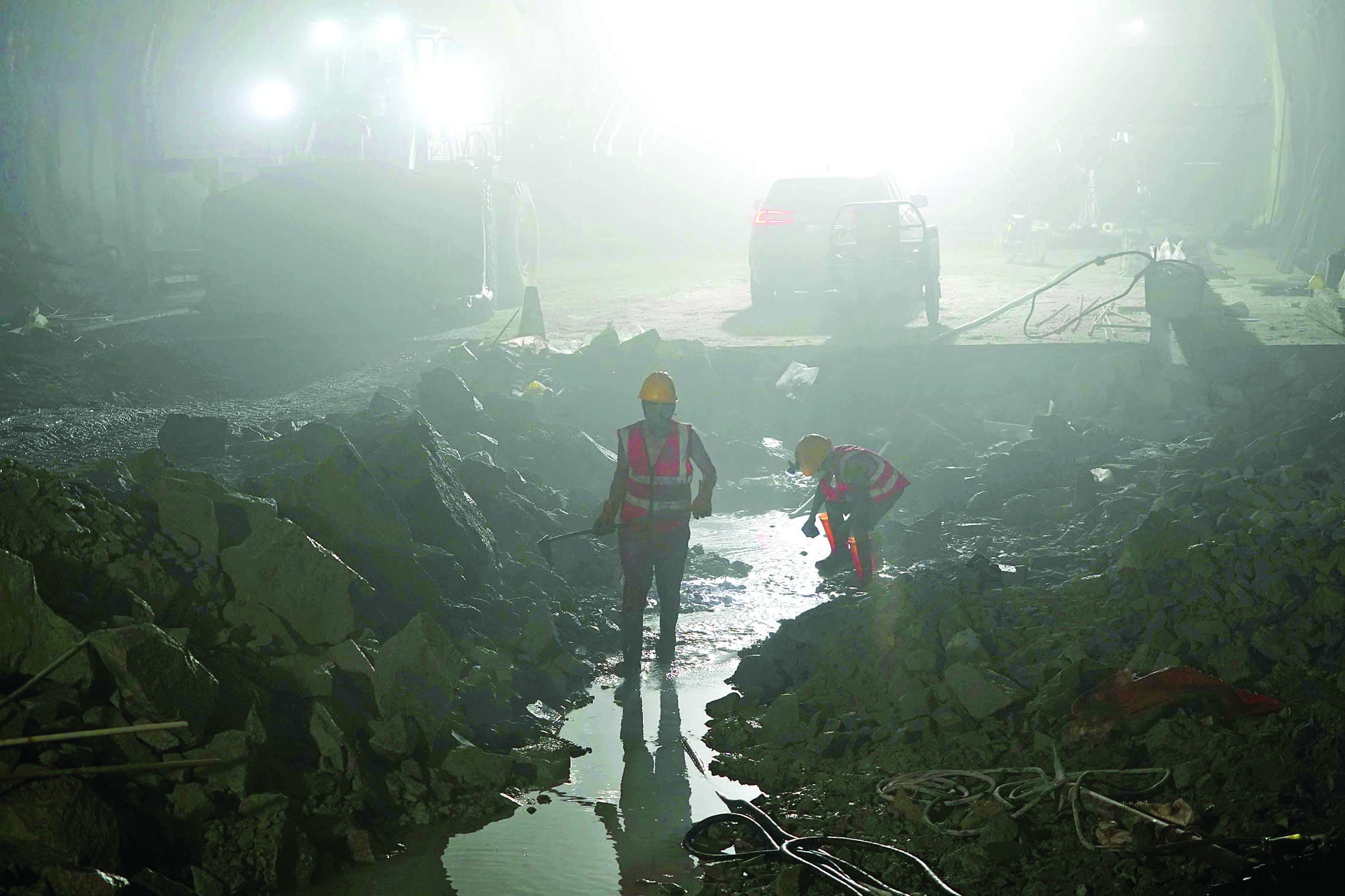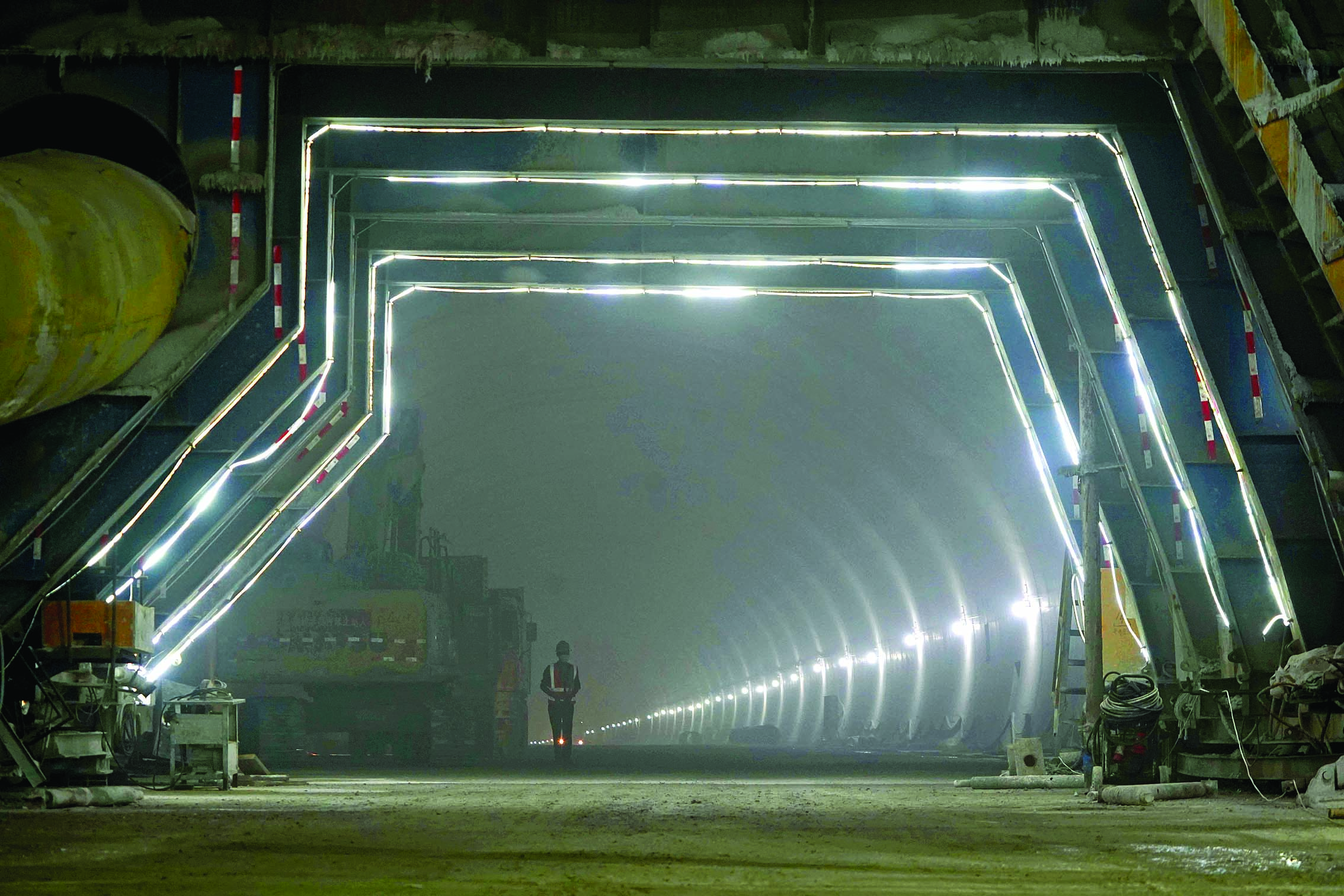 工人在鷓鴣洞隧道內(nèi)施工作業(yè)。