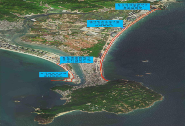 2.港口濱海旅游度假區(qū)劃定東山海和沙咀尾靠近沙灘沙浦地附近劃定4個空曠沙灘區(qū)域(日出銀沙鹽晶酒店牛頭嶺風景區(qū)入口靠近沙浦地區(qū)域;檀悅都喜天麗度假酒店與虹海灣二期之間空地;雙月灣溫德姆至尊豪庭度假酒店出入口對面廣場;雙月灣落日沙灘P2停車場對出沙浦地區(qū)域)定為限時可燃放區(qū),將18時至22時規(guī)定為可燃放時間(紅色區(qū)域為禁燃范圍)。