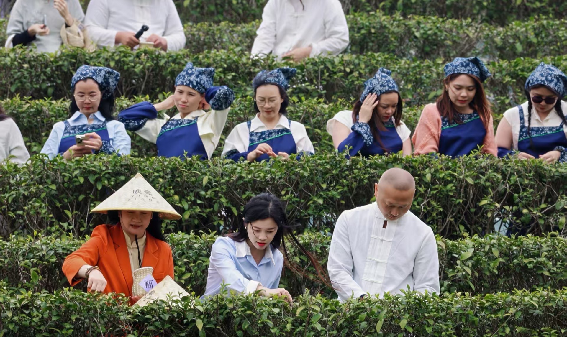現(xiàn)場嘉賓參與采茶。