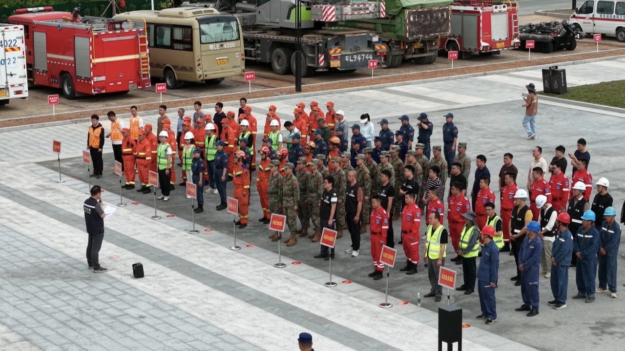 當(dāng)天上午10時,演練在好招樓濕地公園舉行。惠東縣三防指揮部發(fā)出演練指令后,各單位應(yīng)急救援人員迅速響應(yīng),身著救生衣,嚴(yán)格按照實戰(zhàn)全裝標(biāo)準(zhǔn),抵達(dá)指定地點(diǎn)集結(jié)。演練現(xiàn)場,無人機(jī)與無線通訊終端等設(shè)備迅速架設(shè);挖掘機(jī)、排澇車等整齊排開、嚴(yán)陣以待;醫(yī)療救護(hù)、供電保障、通訊搶修等專業(yè)隊伍也全部就位,展現(xiàn)出“召之即來、來之能戰(zhàn)”的應(yīng)急狀態(tài)。