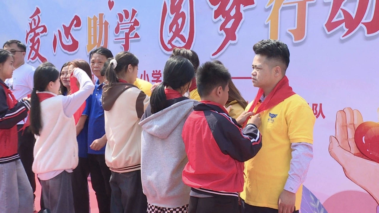 少先隊員為捐贈方代表佩戴紅領巾。 惠州日報記者賴金朗 特約通訊員羅巧如 通訊員賴悅暉 李海澄 攝