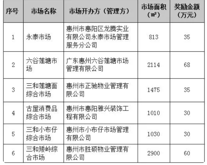 免費為各農(nóng)貿市場精準編制“一場一策”施工方案和施工清單;在全市率先制定出臺《惠陽區(qū)農(nóng)貿市場綜合治理提質升級獎勵辦法》,對按標準、積極開展農(nóng)貿市場提質升級的市場給予最高100萬元的資金獎勵;引入金融機構對接農(nóng)貿市場,幫扶企業(yè)和商戶解決資金問題,放發(fā)相關低息貸款5840萬元……