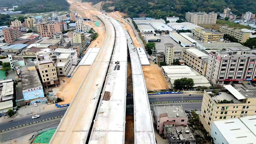 深莞惠紅色干線改建工程(一期)是支撐惠陽產(chǎn)業(yè)發(fā)展的重要“經(jīng)濟走廊”。圖為該項目TJ3標段已建成的高架橋。