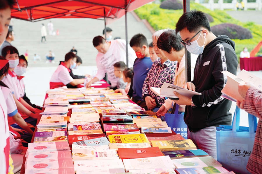 集市現(xiàn)場(chǎng)擺放了大量圖書,供市民置換。