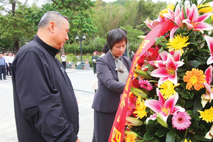 葉挺將軍親屬代表葉挺將軍孫女葉小燕、李小勇伉儷及惠陽區(qū)相關(guān)領(lǐng)導(dǎo)及新聞媒體等近200人參加儀式,為烈士敬獻(xiàn)花籃,寄托對先烈的深切緬懷和崇高敬意。