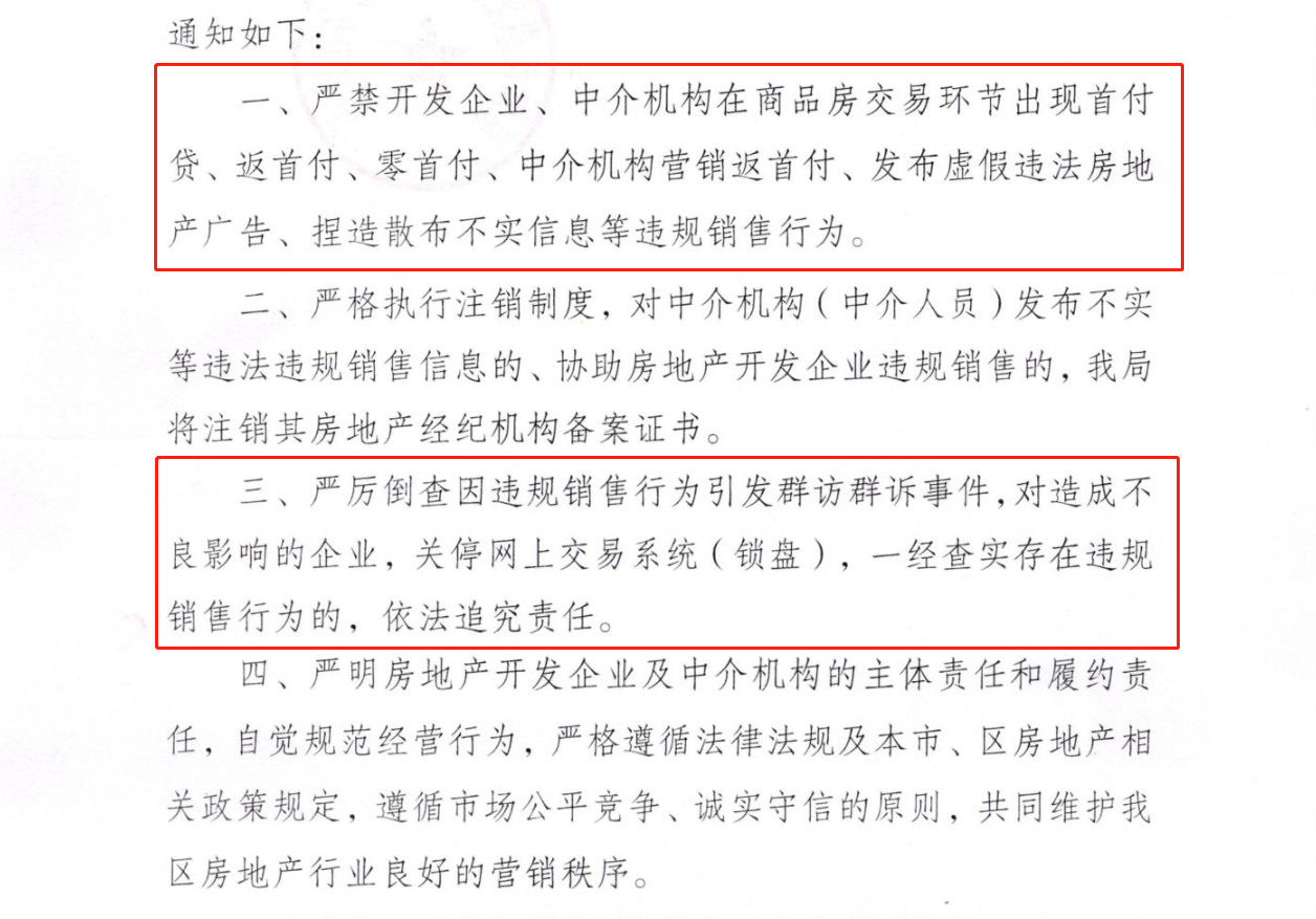 同時,該局還將嚴(yán)厲倒查因違規(guī)銷售行為引發(fā)群訪群訴事件,對造成不良影響的企業(yè),關(guān)停網(wǎng)上交易系統(tǒng) (鎖盤 ),一經(jīng)查實存在違規(guī)銷售行為的,依法追究責(zé)任。