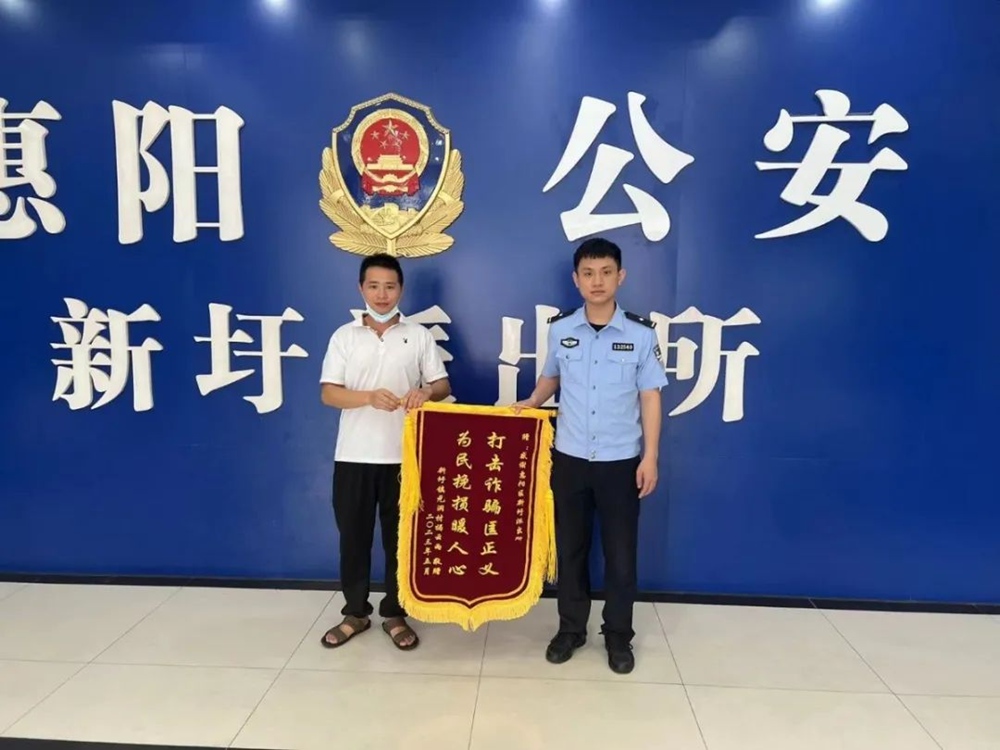 隨著“我為群眾辦實(shí)事”活動(dòng)深入開(kāi)展,惠陽(yáng)公安不斷加大反詐宣傳力度和詐騙犯罪打擊力度,全力守護(hù)群眾的“錢(qián)袋子”。5月24日,揭先生向惠陽(yáng)公安新圩派出所送來(lái)錦旗——“打擊詐騙匡正義,為民挽損暖人心”。在送錦旗的過(guò)程中,揭先生不斷感謝新圩派出所為其挽回部分經(jīng)濟(jì)損失,贊揚(yáng)新圩派出所是真正為群眾做實(shí)事,以群眾利益為主的好單位。