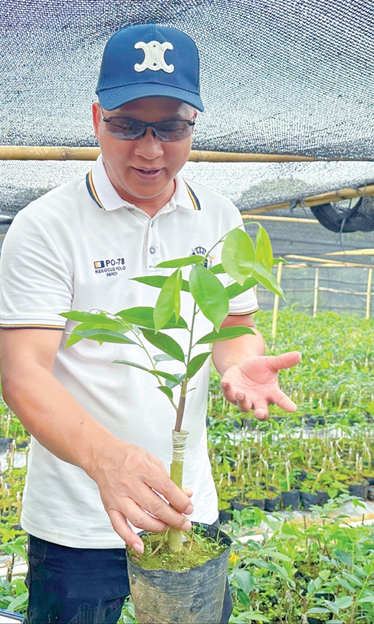 何獻瑞在大棚里查看沉香苗長勢。