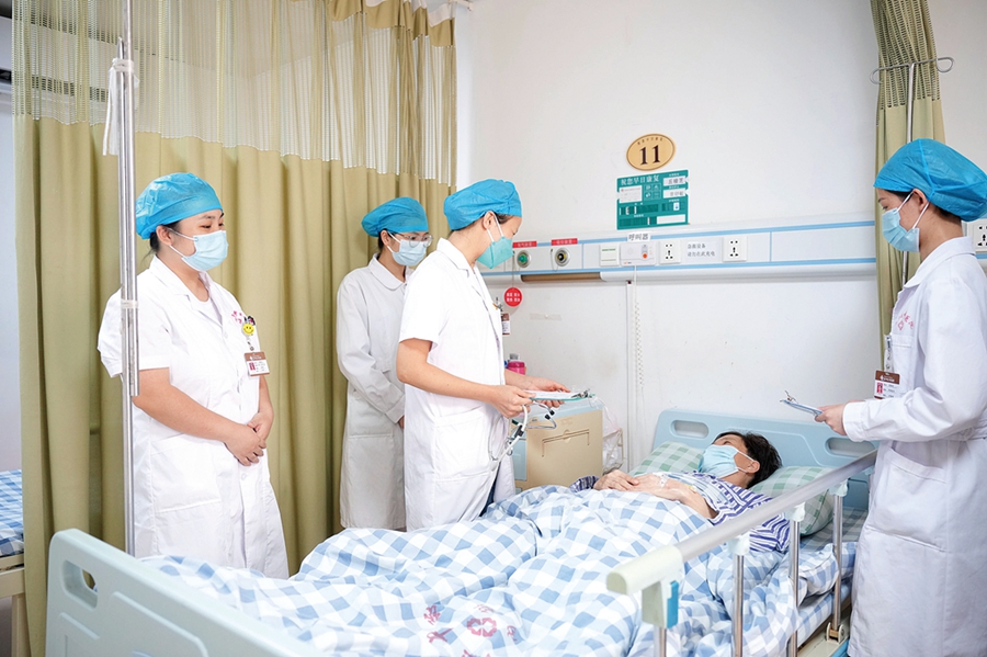 專業(yè)醫(yī)務(wù)團(tuán)隊(duì)查房,并細(xì)心了解患者情況。
