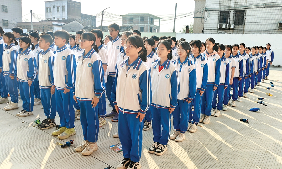 為引導(dǎo)學(xué)子自強(qiáng)自信,該校每周舉行一次臺(tái)上5分鐘主題式國(guó)旗下講話,給學(xué)生提供展現(xiàn)青春的舞臺(tái);每月開設(shè)思政主題教育,3月學(xué)雷鋒讓志愿服務(wù)成標(biāo)桿、4月緬懷先烈傳承紅色基因、5月辛勤勞動(dòng)創(chuàng)造幸福、6月成為守法小衛(wèi)士、7月感恩微笑面對(duì)家人等;每周上一節(jié)集訓(xùn)課,分年級(jí)組織學(xué)生在德育小廣場(chǎng)進(jìn)行軍姿訓(xùn)練,以軍人的要求,做到“坐如鐘、站如松、行如風(fēng)”,樹立像軍人一樣的意志和風(fēng)范。每半學(xué)期開展暖心關(guān)愛家訪活動(dòng),老師們利用周六周日課余時(shí)間,走進(jìn)學(xué)生家庭,知曉學(xué)生生活的環(huán)境與家庭狀況變化,關(guān)懷孩子的生活,促進(jìn)輔導(dǎo)與培養(yǎng)。