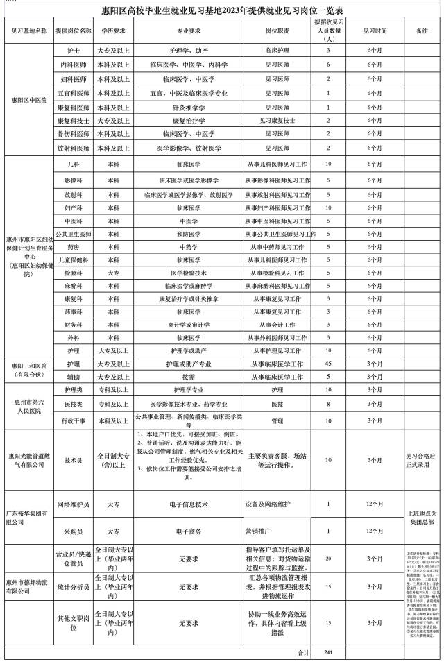 近日,惠陽區(qū)人社局發(fā)布公告,為深入實施離校未就業(yè)畢業(yè)生就業(yè)促進計劃,積累實踐經(jīng)驗、增強高校畢業(yè)生就業(yè)能力,根據(jù)國家省有關就業(yè)見習工作要求,現(xiàn)發(fā)布惠陽區(qū)285個高質量見習崗位,歡迎有見習意愿的離校2年內未就業(yè)高校畢業(yè)生和16—24歲失業(yè)青年踴躍報名。