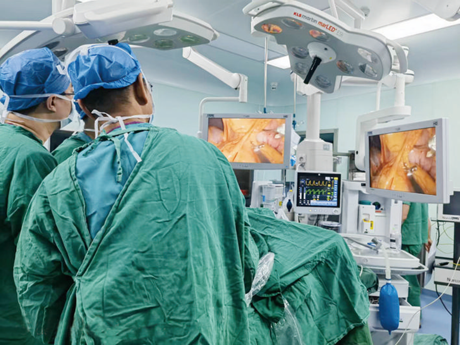 院內(nèi)進行腹腔鏡右半結(jié)腸癌根治術(shù)。
