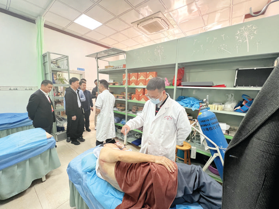 惠陽區(qū)秋長(zhǎng)西湖衛(wèi)生站開展中醫(yī)適宜技術(shù),為病患艾灸治療。