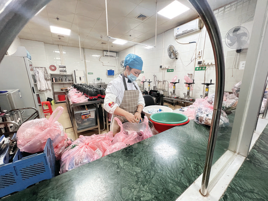 惠陽區(qū)中醫(yī)院為病患煎熬中藥。