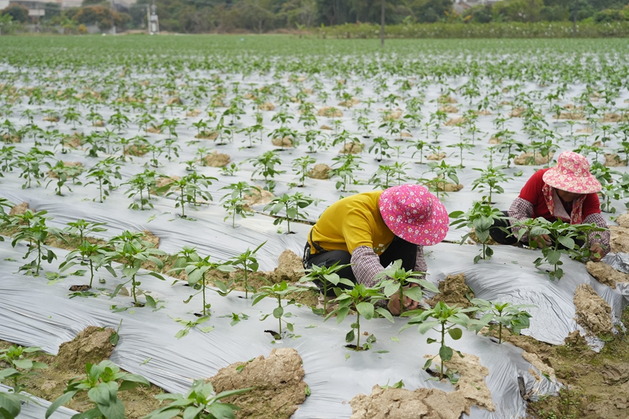 菜農(nóng)管護(hù)辣椒苗。