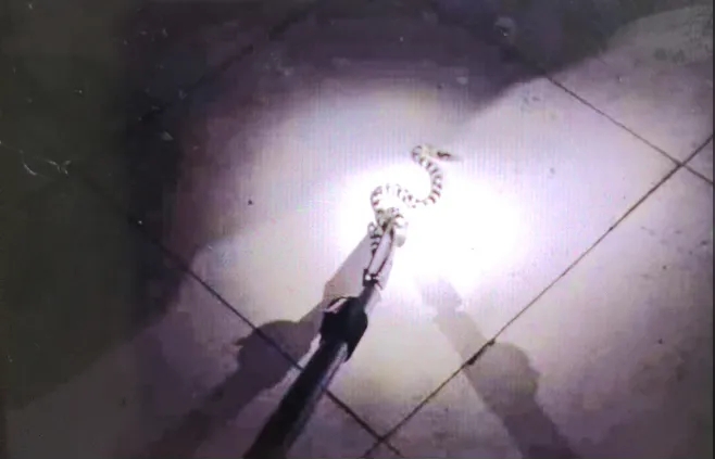惠州惠陽某企業(yè)的員工陳姐(化名)下班后,回宿舍洗漱完畢躺床上準(zhǔn)備休息時(shí),突然感覺左手臂傳來刺痛感,同時(shí)感覺一個(gè)滑溜溜的物體從手上滑過去。心覺不妙的陳姐立即起身查看,甩手拍打間,一條黑白相間的蛇掉落地上。看到蛇的那一瞬間,陳姐被嚇得驚叫起來。