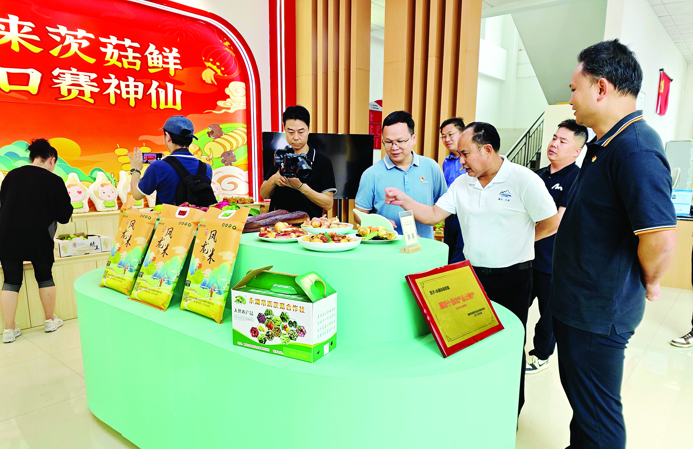 采風團在永湖鎮(zhèn)吊瀝村委會茨菇展廳參觀。
