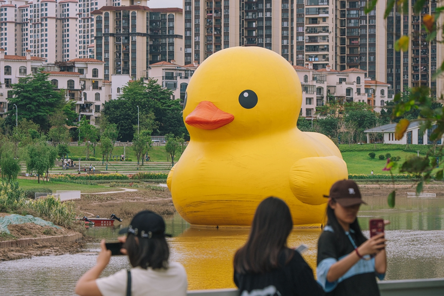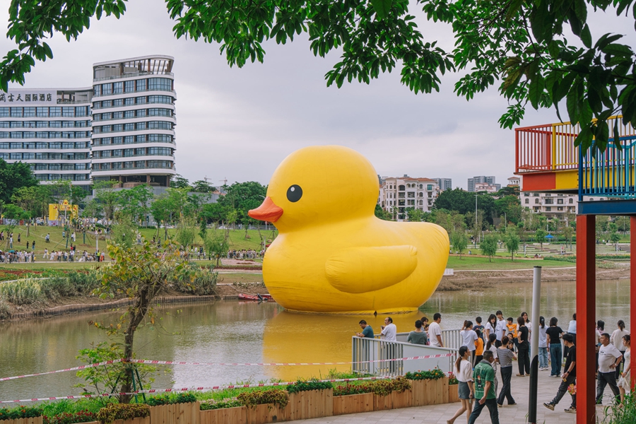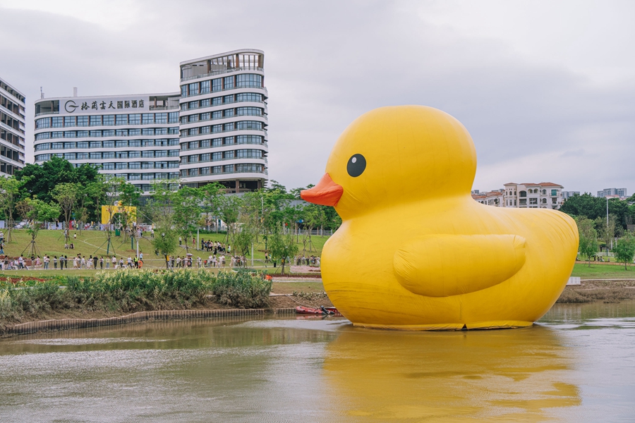 據(jù)介紹,《Rubber Duck(大黃鴨)》是荷蘭藝術(shù)家弗洛倫泰因·霍夫曼(Florentijn Hofman)代表作之一,是時(shí)下爆款的公共藝術(shù)作品。在來到惠陽區(qū)前的15年內(nèi),大黃鴨已經(jīng)完成了環(huán)球旅行,成功打卡52個(gè)國家和地區(qū),每到一個(gè)地方都能引起當(dāng)?shù)氐牟毮浚慰团抨?duì)去跟它合照,并在社交媒體上引發(fā)熱議,也為當(dāng)?shù)卦谘苌肥圪u、餐飲、住宿、交通等周邊產(chǎn)業(yè),帶來了巨大的經(jīng)濟(jì)效益。