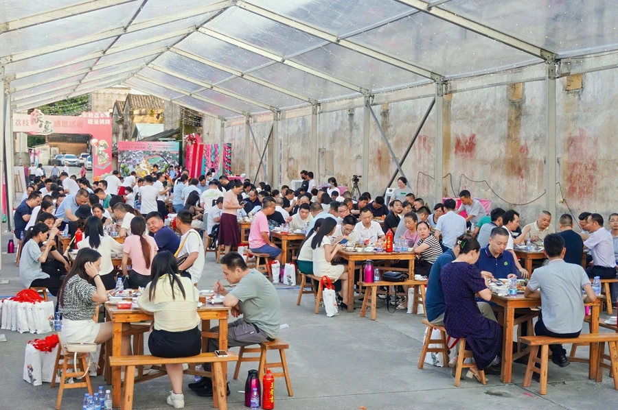 活動邀請企業(yè)家、鄉(xiāng)賢、果農(nóng)等約500人歡聚一堂,共享荔枝季的甜蜜,大家在品嘗中共話鎮(zhèn)隆發(fā)展。