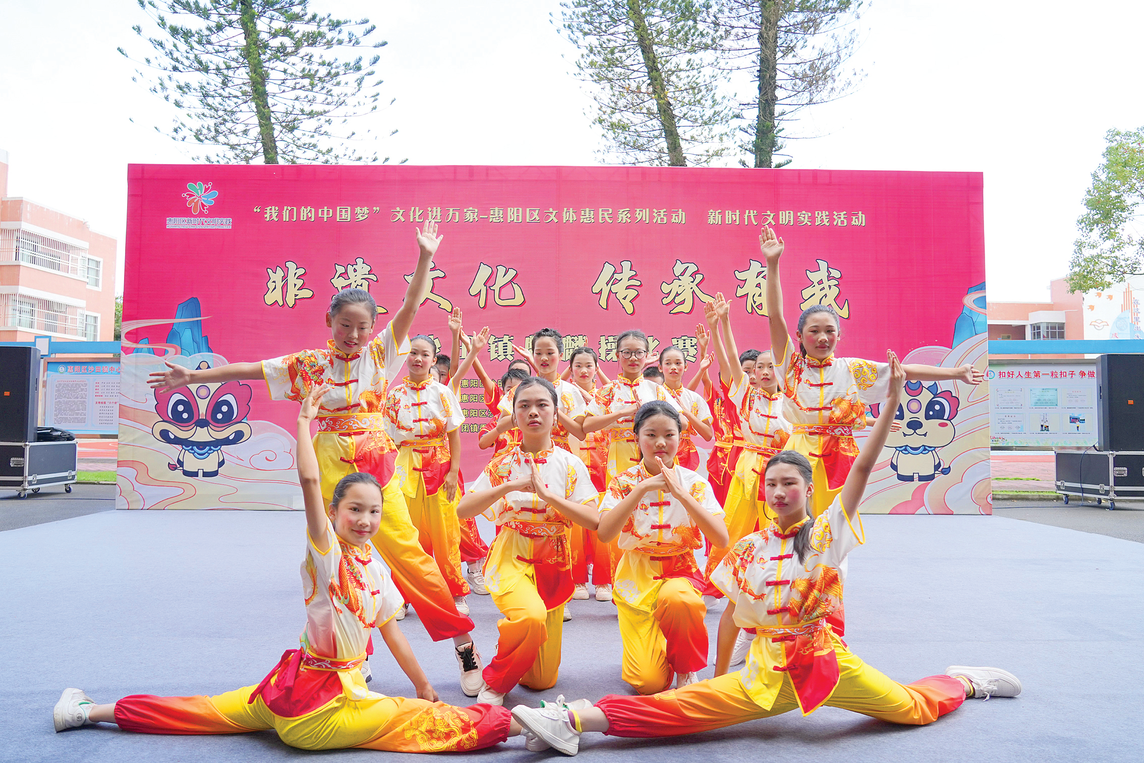 沙田鎮(zhèn)集成小學(xué)展演麒麟操。惠州日?qǐng)?bào)記者許文昌 通訊員張小瓊 攝