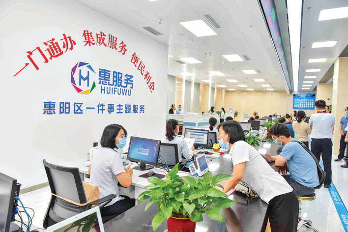 惠陽區(qū)行政服務中心工作人員在為群眾辦理業(yè)務。惠州日報記者許文昌 攝