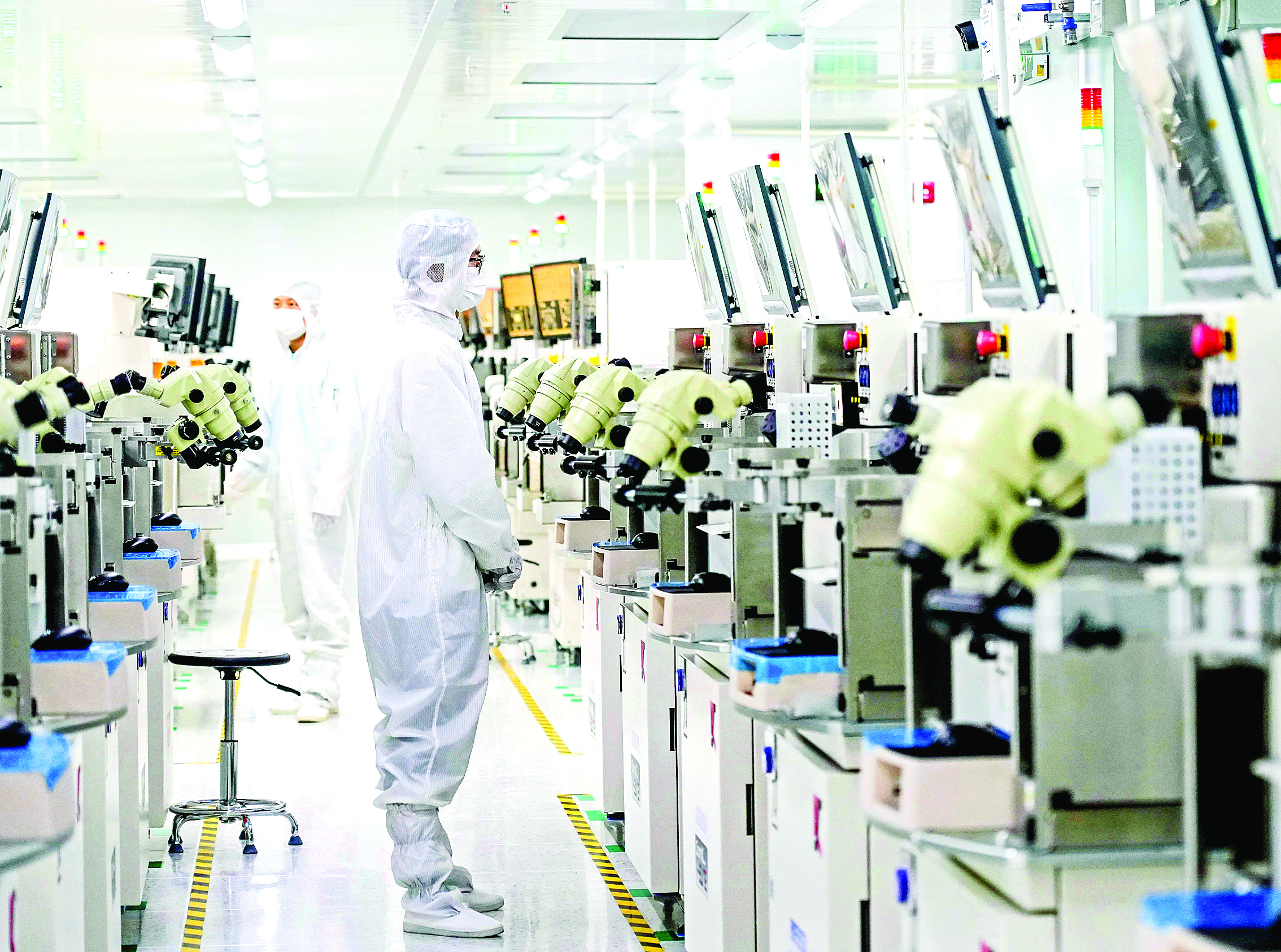 穿上全密封一體化防護(hù)服、防塵鞋,戴上全密封手套,走進(jìn)位于秋長(zhǎng)的廣東長(zhǎng)華科技有限公司千級(jí)無(wú)塵車間,一條條生產(chǎn)線整齊排列,一臺(tái)臺(tái)嶄新的精密自動(dòng)化設(shè)備忙碌運(yùn)作。這里建成了多種產(chǎn)品封裝生產(chǎn)線,所生產(chǎn)的產(chǎn)品廣泛應(yīng)用于汽車、筆記本電腦、光伏儲(chǔ)能、智能家居、無(wú)線通信等消費(fèi)類和工業(yè)類電子領(lǐng)域。