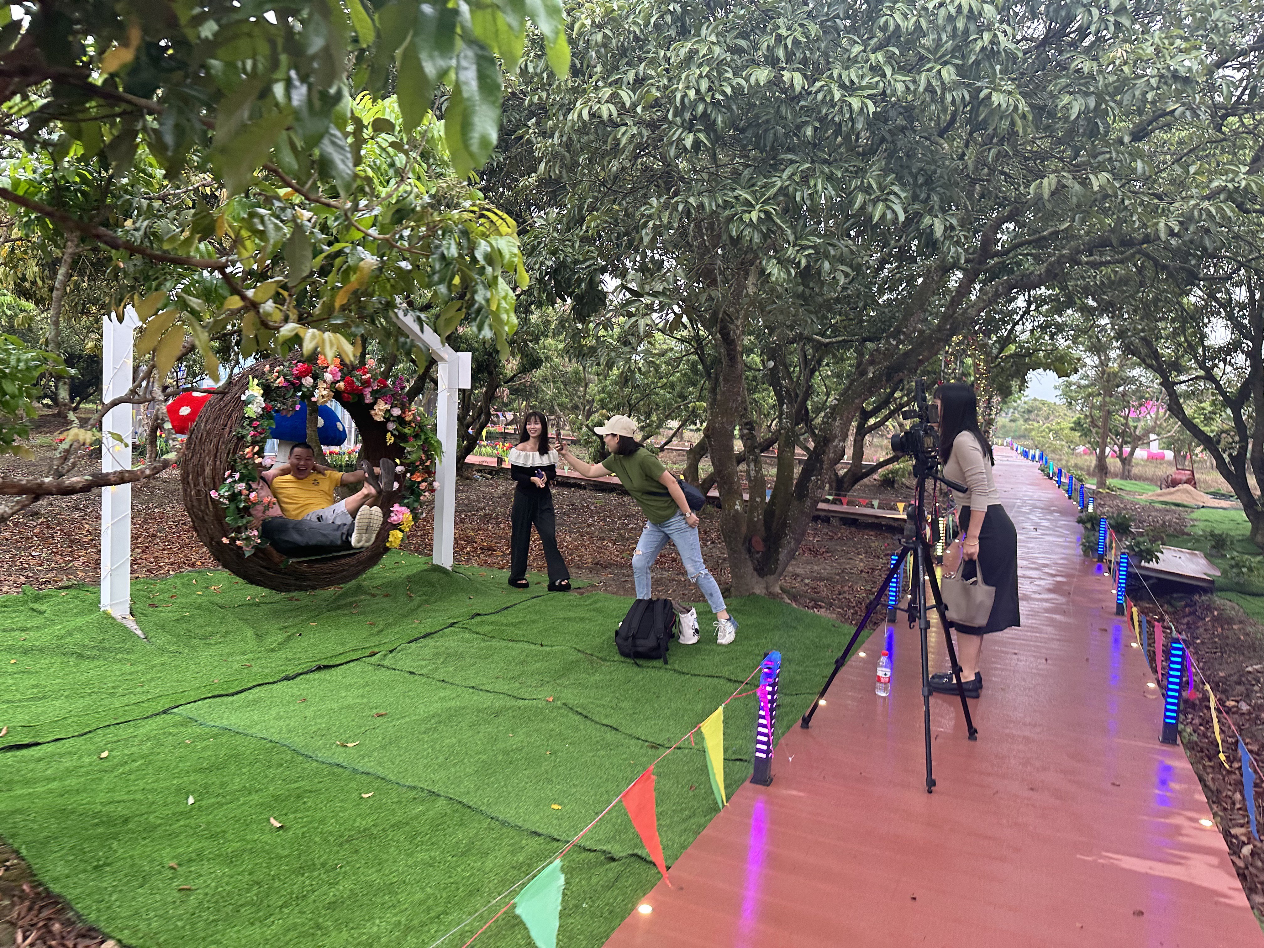 游客在平潭鎮(zhèn)陽光村七彩四季綠光景園打卡。東江圖片社供圖
