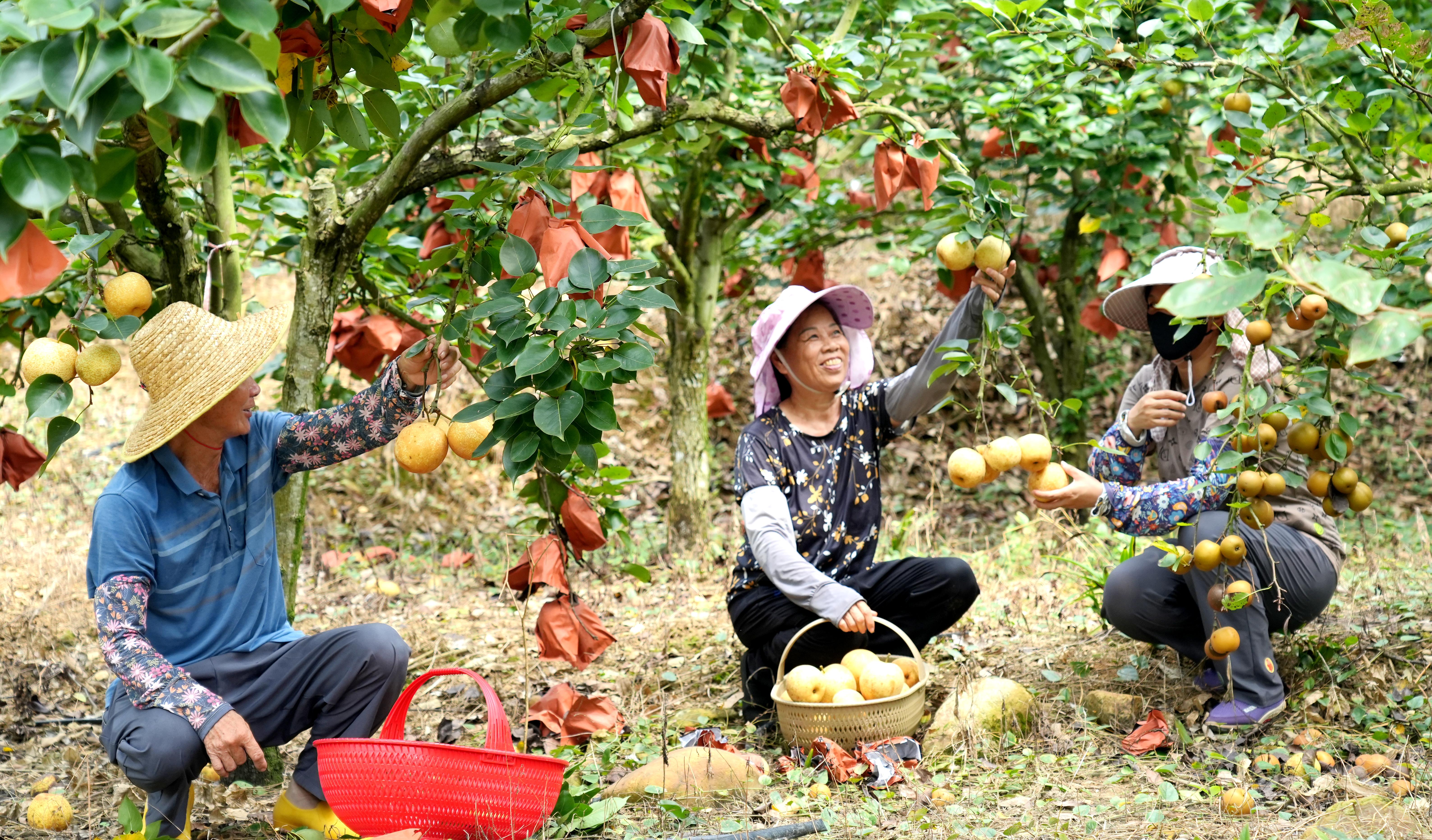 盛夏時(shí)節(jié),惠陽區(qū)沙田鎮(zhèn)東南一隅,市級(jí)自然資源保護(hù)區(qū)——金桔村,正迎來一年中最甜美的時(shí)節(jié)。60余畝青花梨果實(shí)綴滿枝頭,隱在綠葉與黃色果袋之下。微風(fēng)拂過,清甜的果香彌漫開來,沁人心脾。絡(luò)繹不絕的游客驅(qū)車前來,品嘗這盛夏的甘甜。這幅生動(dòng)的場(chǎng)景,是當(dāng)?shù)匾劳猩鷳B(tài)稟賦,深耕特色農(nóng)業(yè),推動(dòng)鄉(xiāng)村振興、助力“百千萬工程”的鮮活縮影。