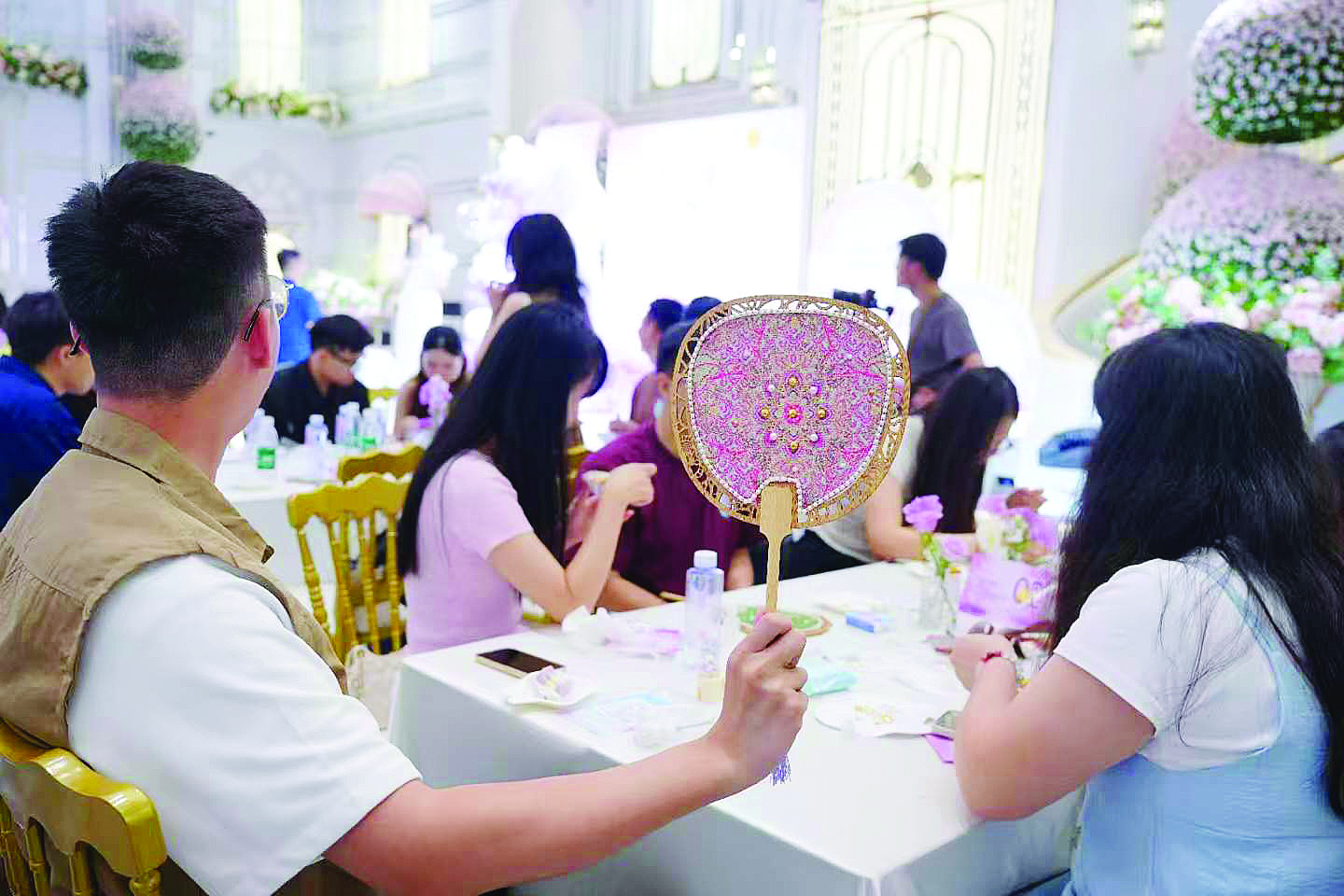 嘉賓攜手制作精美團(tuán)扇。