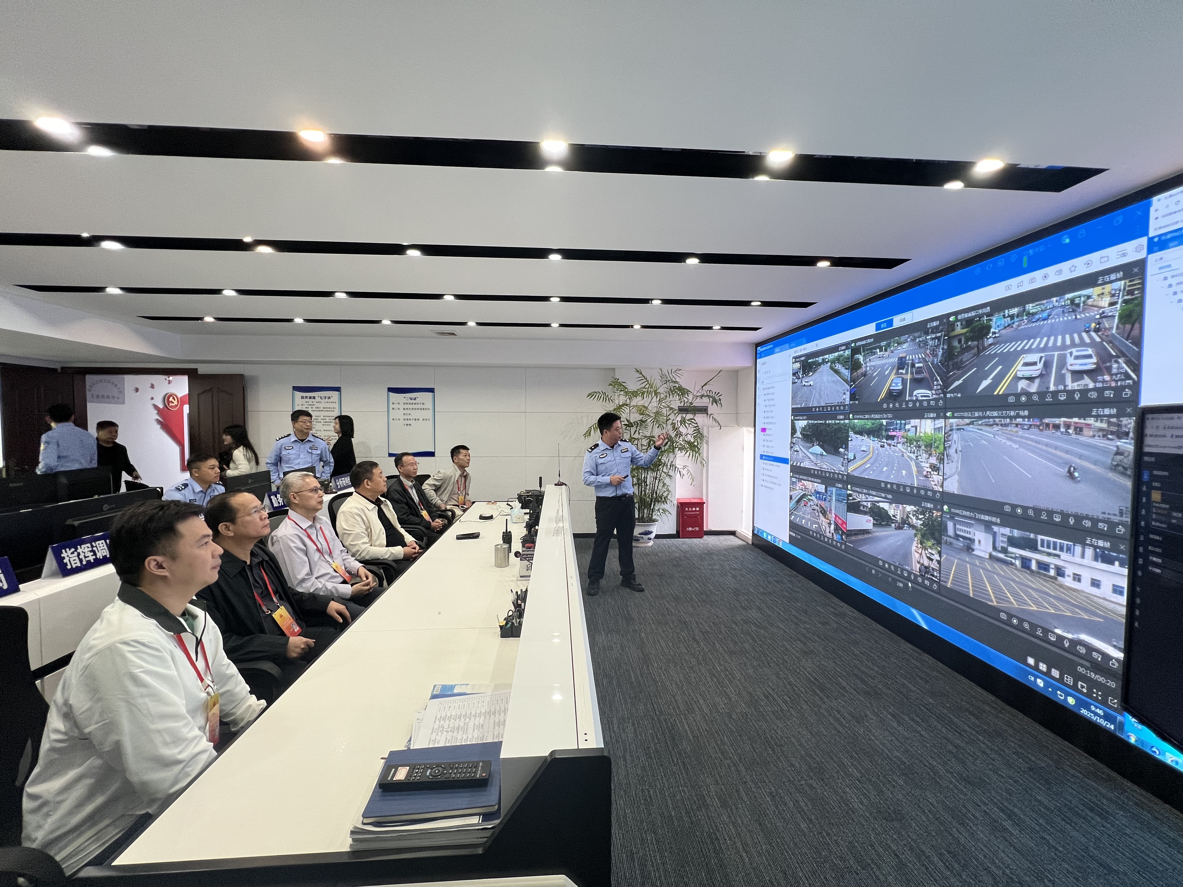 在市公安局惠陽區(qū)分局交管大隊指揮室,調(diào)研組觀摩了圖像視頻綜合應(yīng)用平臺和大疆機(jī)場自動化無人機(jī)作業(yè)平臺實時運行情況。大屏上清晰顯示各主要道路的交通流量、車輛通行狀況和突發(fā)事件處置流程,展現(xiàn)了智慧交通系統(tǒng)在指揮調(diào)度、疏堵保暢中的核心支撐作用。