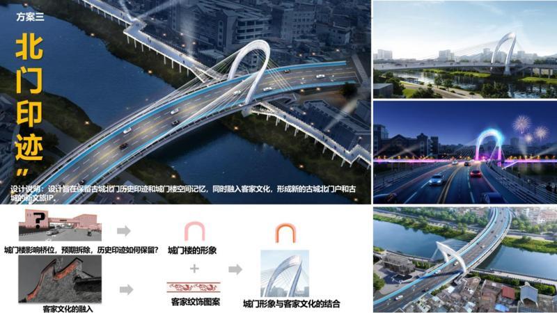 設(shè)計說明:設(shè)計旨在保留古城北門歷史印跡和城門樓空間記憶,同時融入客家文化,形成新的古城北門和古城的新文旅IP。