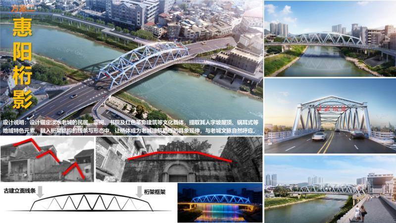 設(shè)計說明:設(shè)計緊扣“淡水人家”主題,貫穿“家”的溫暖意象,萃取惠陽客家建筑“鑊耳山墻”精髓,側(cè)面巧用“扇形”框架勾勒出山花造型。既彰顯地域文化特色,又讓橋梁成為連接鄉(xiāng)愁與城市的文化紐帶,定格溫暖的家鄉(xiāng)記憶。