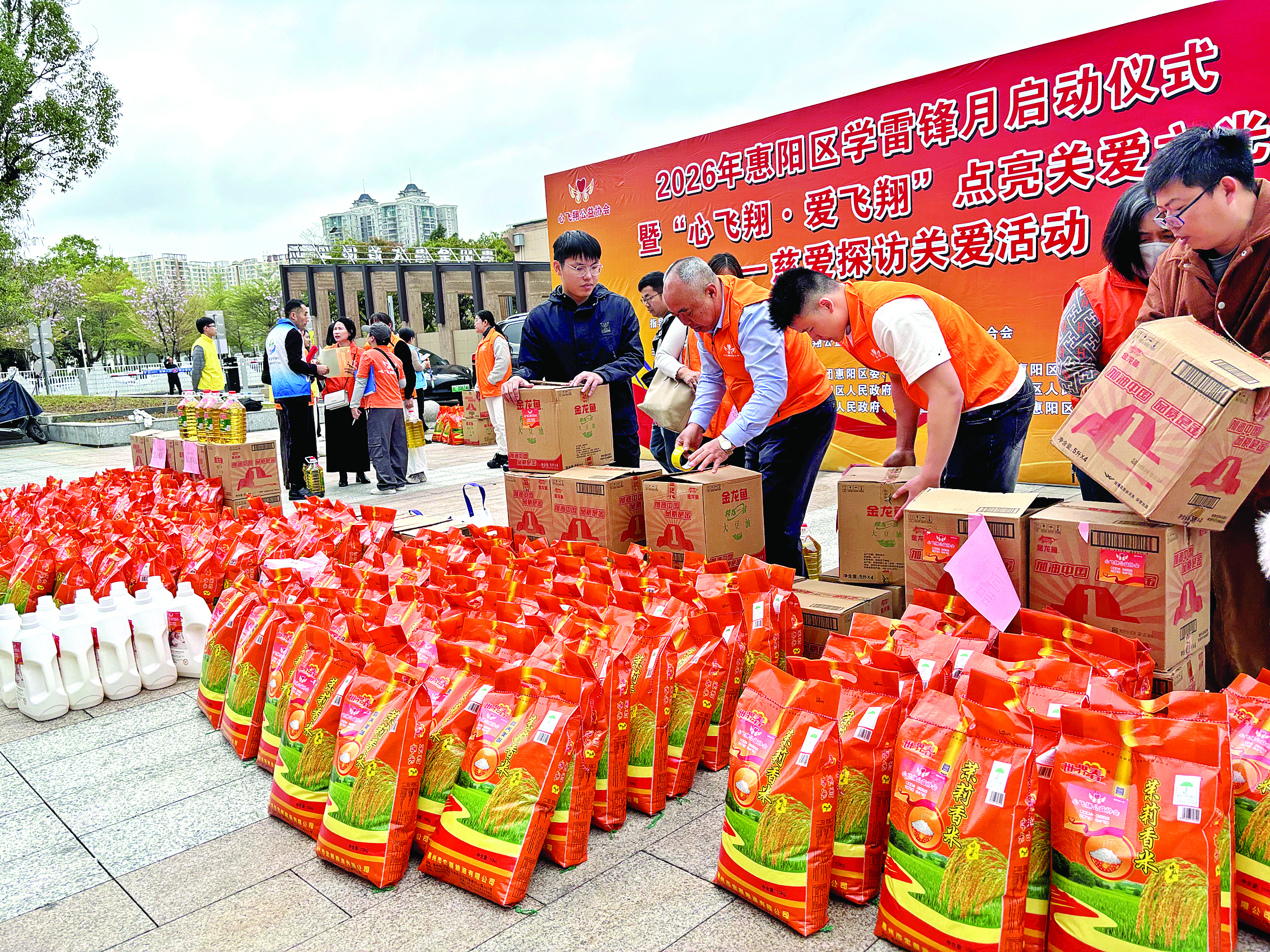 活動籌集大米、食用油、洗衣液等實用愛心物資600份。 惠州日報記者黃尉宏 攝