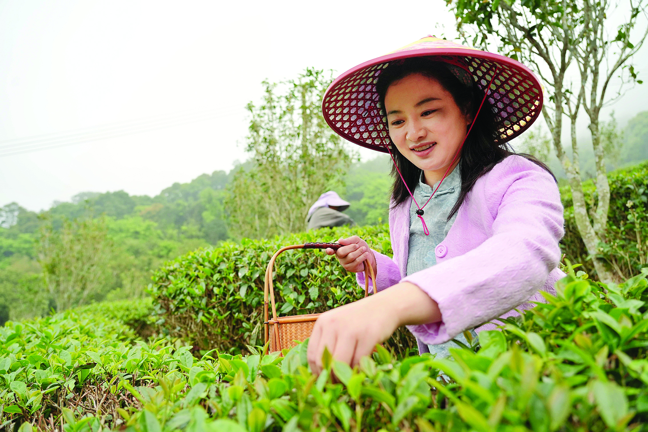茶農(nóng)正在采摘桔塱茶。惠州日?qǐng)?bào)記者許文昌 攝
