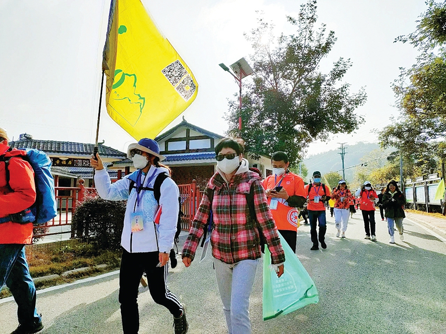 徒步愛好者們邊步邊拾撿路面的垃圾。 惠州日報記者黃宇翔 通訊員龍融心 攝