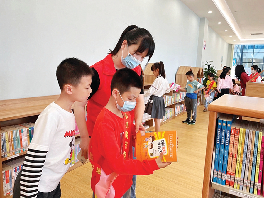 在工作人員的帶領下,學生們還依次參觀了報紙期刊室、成人借閱室、電子閱覽室等功能室,熟悉圖書館的功能結(jié)構(gòu)、借閱規(guī)則等。隨后大家進行分組,正式上崗履行“小小圖書管理員”的職責。