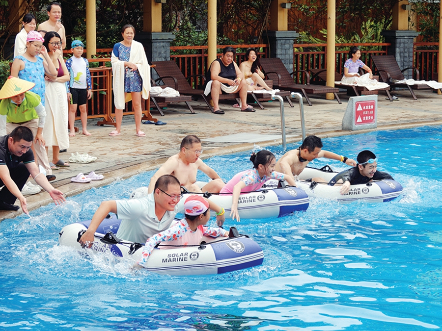 “假期首日,地派溫泉度假村的客房入住率就已達到86%,整體來說安全有序。”龍門縣地派溫泉森林度假區(qū)景區(qū)負責(zé)人、廣東省溫泉行業(yè)協(xié)會副會長、龍門縣旅游協(xié)會會長李星凱介紹,“五一”期間,地派溫泉森林度假區(qū)的客房特別受歡迎,預(yù)訂量增長明顯,客房入住率基本超過90%。為了給各地游客帶來舒適、美好的旅行體驗,該景區(qū)在“五一”期間開放了心形泳池、微波泳池以及兒童水上樂園等多個水上項目,同時景區(qū)內(nèi)還設(shè)置了多個互動小游戲區(qū)域,讓家長與孩子有更親密的互動接觸,進一步提升旅游體驗感、獲得感。