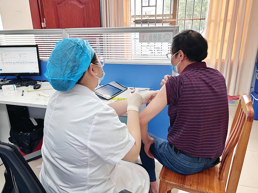 龍城街道社區(qū)衛(wèi)生服務(wù)中心內(nèi),市民正在接種新冠疫苗。 惠州日報(bào)記者黃宇翔 通訊員龍融心 攝