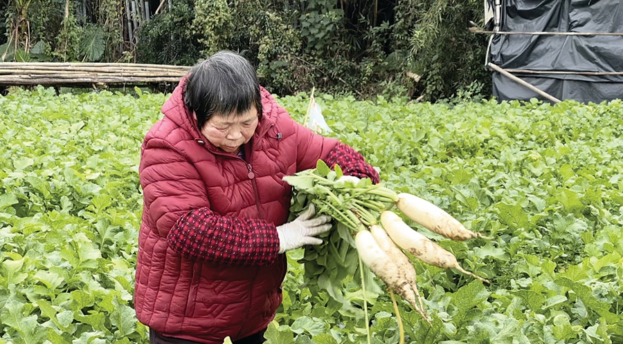 近日,記者在龍華鎮(zhèn)功武村看到,整齊的田壟間生長著翠綠的蘿卜苗,放眼望去,郁郁蔥蔥,生機勃勃。一簇簇青綠葉子下,一個個大小均勻、白白嫩嫩的蘿卜長勢喜人。村民們正嫻熟地將蘿卜從土地里拔出,剛出土的蘿卜鋪滿田埂,現(xiàn)場一派忙碌的景象。