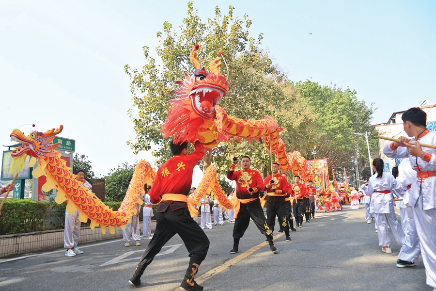 此次巡游表演形式豐富多樣,有惟妙惟肖、活靈活現(xiàn)的舞龍、醒獅、舞貔貅、舞春牛,有剛勁有力、招式靈活的龍形拳、李家拳、梅花拳,有傳統(tǒng)而古老的舞火狗,還有韻味十足的農(nóng)民畫旗袍秀等。獨具龍門特色的非物質(zhì)文化遺產(chǎn)代表性項目輪番上演,奉上了一場年味十足的文化盛宴。